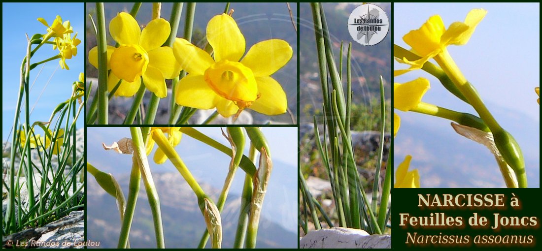 Noms français : NARCISSE à FEUILLES de JONC, NARCISSE d'ASSO, Narcisse de Requien Famille : Amaryllidaceae Lieu d'observation : Marseille, Parc des calanques, Sommet Sainte-Croix - Avril 2009 Floraison : Mars-Mai Commentaire : Flore méditerranéenne présente dans le parc des Calanques. Cette espèce reste peu commune dans le parc des calanques où elle a été observée en avril dans le massif Saint-Cyr, au sommet du mont Sainte-Croix. Cette espèce est présente dans un petit quart Sud-Est de la France et Pyrénnées de 0 à 1200 m d'altitude. Elle affectionne les sols calcaires rocailleux, la garrigue dans des zones bien ensoleillées.